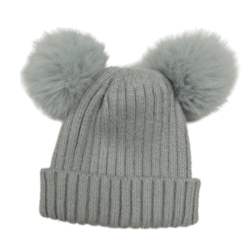 Šedá melírovaná žebrovaná úpletová čepice s bambulemi Matalan