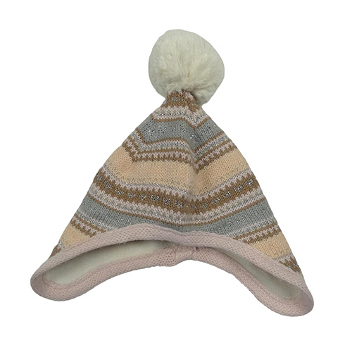 Béžovo-šedo-hnědá vzorovaná třpytivá čepice s bambulí Next