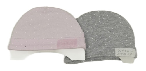 Nové - 2x puntíkatá čepice - růžová + šedá
