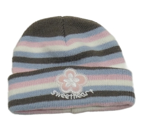 Barevná pruhovaná pletená čepice s květem