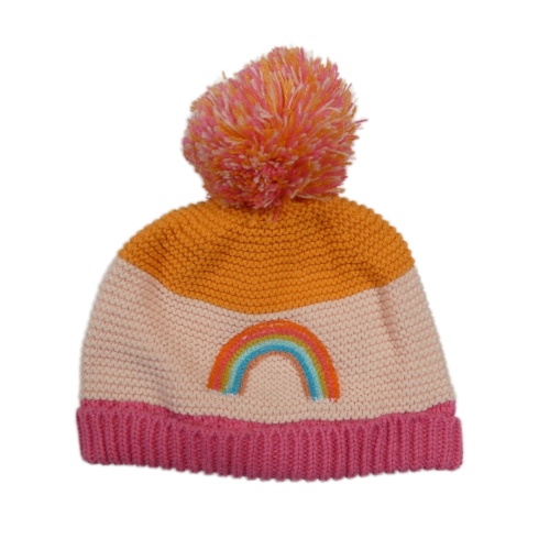 Světlerůžovo-oranžová pletená podšitá čepice s bambulí Next
