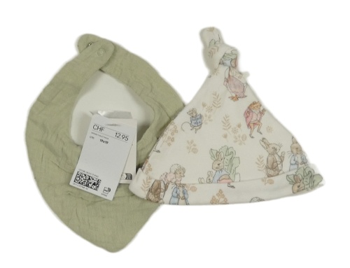 • Nové - 2Set - Smetanová čepice s králíčky - Peter Rabbit + světleolivový šátek H&M