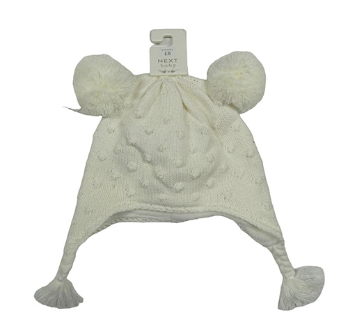 Nové - smetanová vzorovaná podšitá čepice s bambulemi