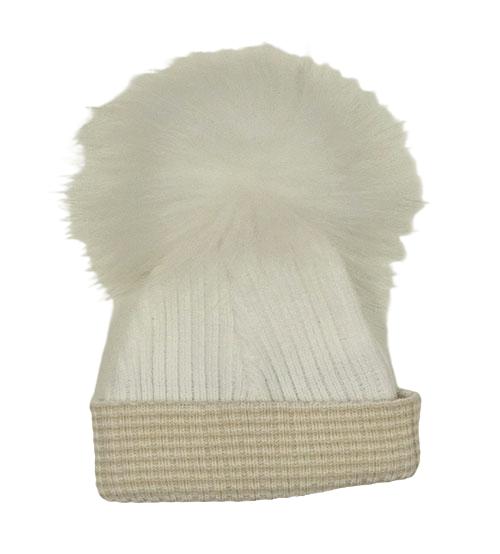 Smetanová žebrovaná pletená čepice s bambulí