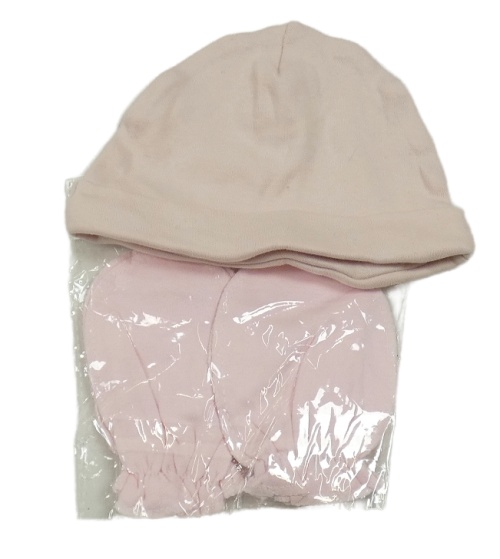2set - Růžová bavlněná čepice + rukavičky