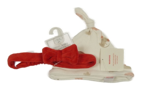2set- Bílá bavlněná čepice s obrázky+ červená čelanka