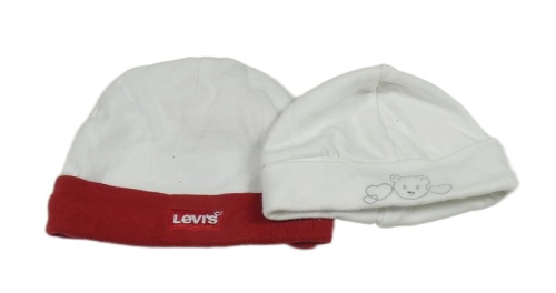 • 2set - Bílo-červená bavlněná čepice s nápisem + bílá s medvídkem