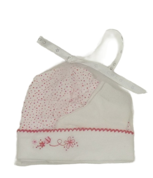 Nové - 2set - Bílá puntíkatá bavlněná čepice s výšivkami květin + bílé ponožky