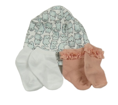 3set- bílá čepice s kočkami+ 2x ponožky