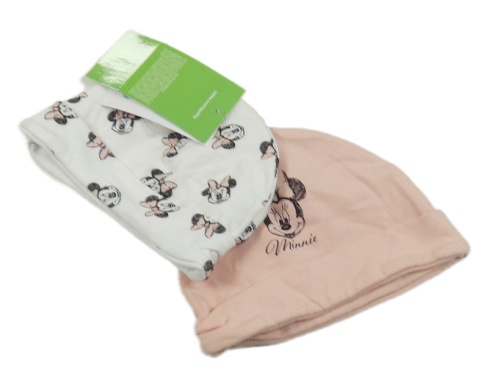 Nové - 2x - Čepice s Minnie - Bílá, světlerůžová Disney
