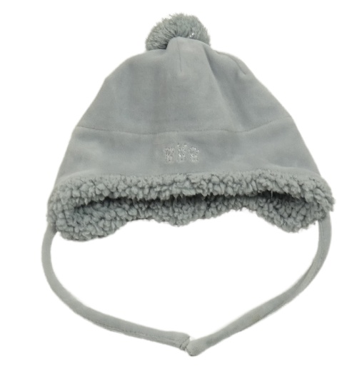 Šedá sametová zateplená čepice s bambulí