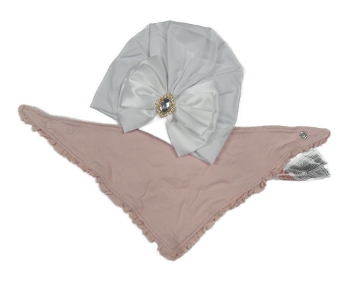 2set- bílá turbanová čepie s mašlí+ růžový slinták