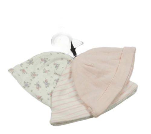 Nové - 3x - Světlerůžová + pruhovaná + bílá čepice s kytičkami F&F