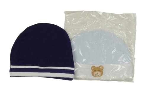 Nové - 2x - Tmavomodrá + světlemodrá bavlněná čepice s medvídkem