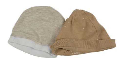 2x - Béžová + hnědá čepice s puntíky