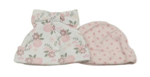 2set - 2x květovaná čepice - růžová + bílá s mašlí
