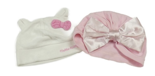 2x čepice růžová turbanová s mašlí+ bílá s mašlí