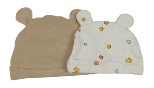 2x - Bílá s hvězdičkami + béžová čepice s medvídkem