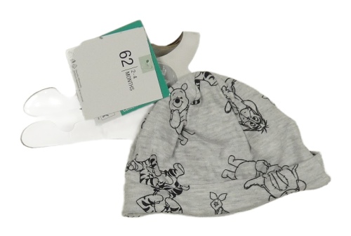 Nové - Šedá melírovaná bavlněná čepice s medvídkem Pú