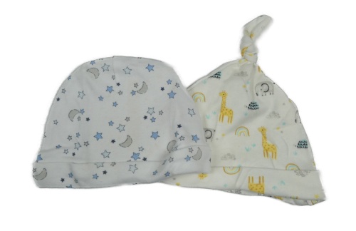 • 2x - bílá čepice - s hvězdičkami a měsíci, zvířátky a duhami St. Bernard