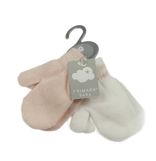 Nové - 2x pletené palcové rukavice - bílé + růžové Primark