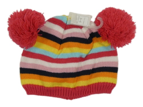 Nová - barevná pruhovaná pletená čepice s bambulemi Next