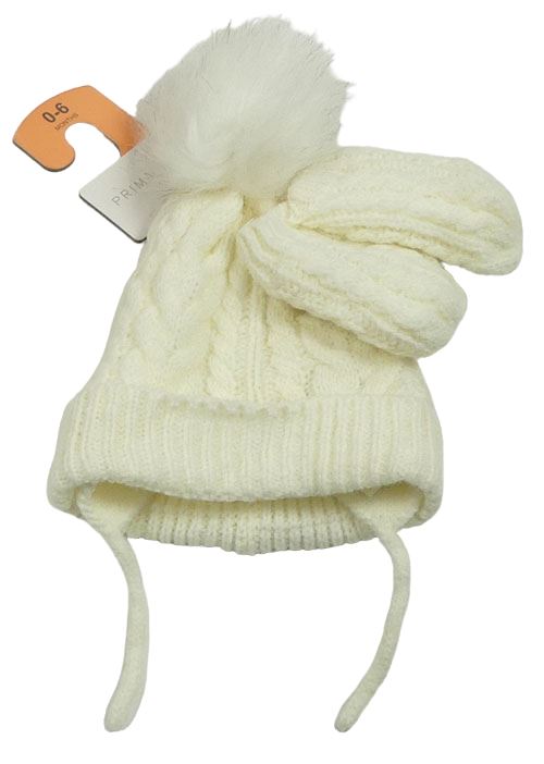 Nové - 2set - Bílá vzorovaná čepice s bambulí + rukavice Primark