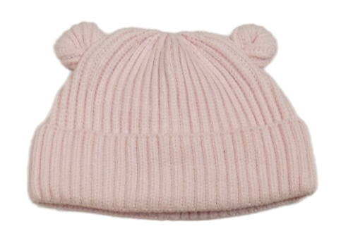 Růžová žebrovaná pletená čepice s oušky Nutmeg