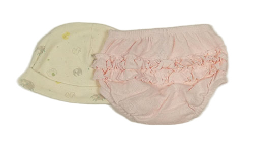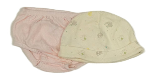 • 2Set - Smetanová čepice se zvířátky + světlerůžové kalhotky na plenky s perforovanými srdíčky a kanýrkem a volánkem Matalan