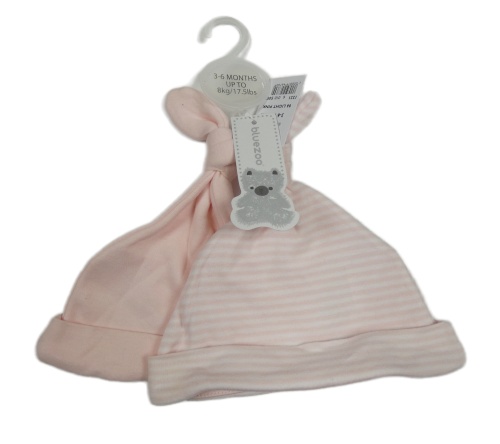 Nové - 2x Růžová + růžová pruhovaná bavlněná čepice Bluezoo