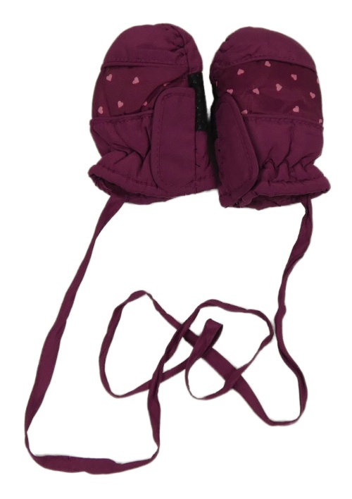 Tmavorůžové šusťákové palcové zimní rukavice se srdíčky