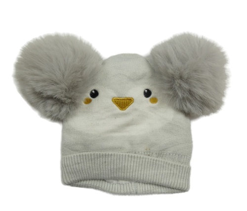 Světlešedo-bílá pletená čepice s bambulemi - tučňák George