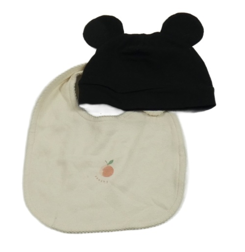 • 2set - Černá bavlněná čepice s oušky + béžový slinták s broskví