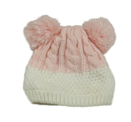 Růžovo-bílá pletená čepice s bambulemi Nutmeg