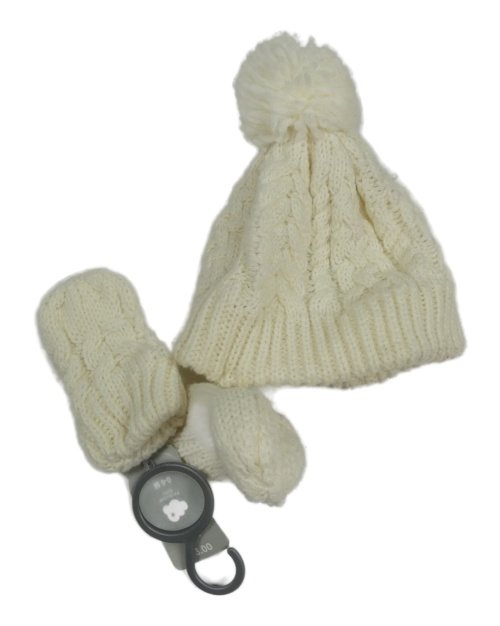 Nové - 2set - Bílá vzorovaná čepice s bambulí + rukavice Primark