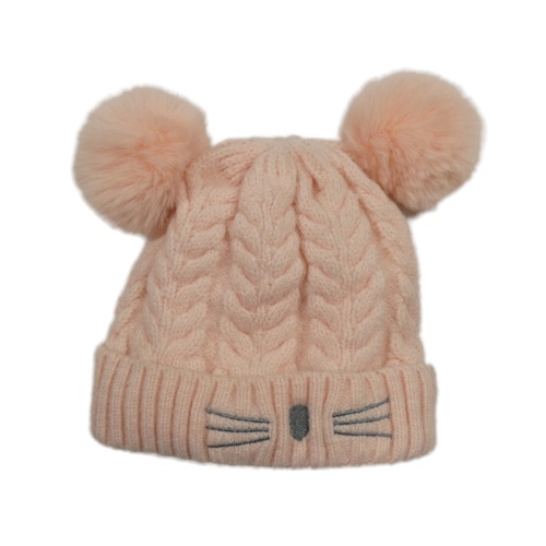 Světlerůžová čepice s čumákem a bambulemi
