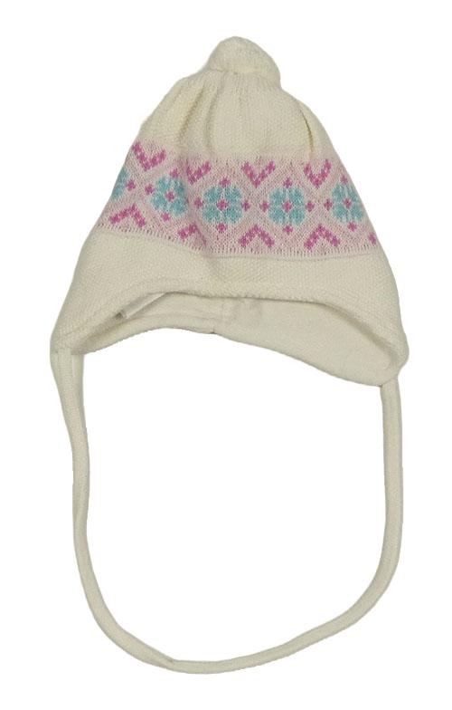 Smetanovo-růžová čepice se vzorem a bambulí