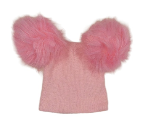 Růžová pletená čepice s bambulí