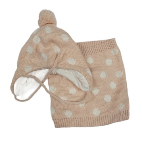 2set- světlerůžová puntíkatá čepice+ nákrčník H&M