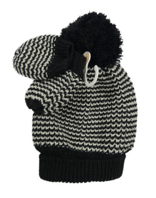 Nové - 2set - Černo-bílá pruhovaná čepice s bambulí + rukavice George