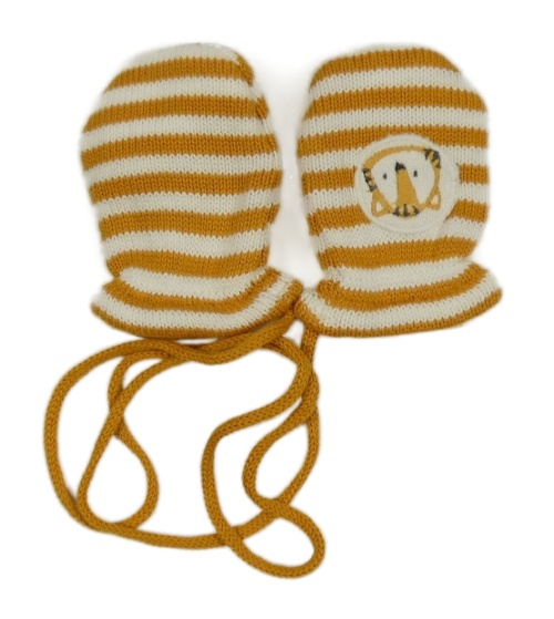 Medovo-bílé pruhované pletené podšité rukavice se zvířátkem