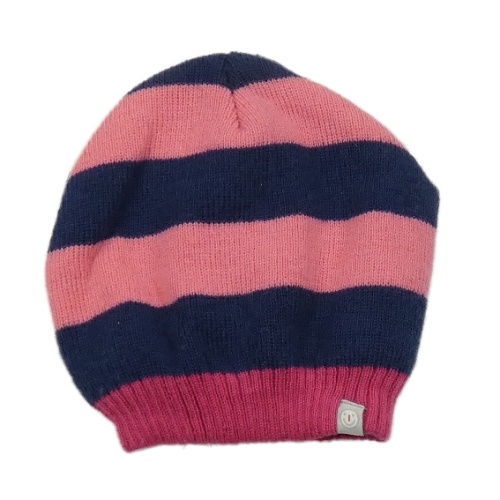 Růžovo-tmavomodrá pruhovaná pletená podšitá čepice Liegelind