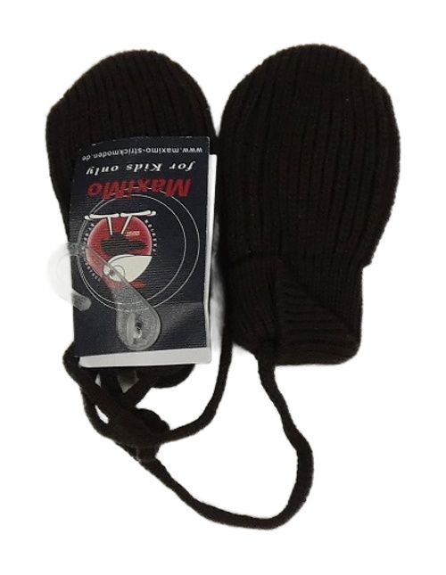 Nové - tmavohnědé žebrované pletené palcové rukavice se šňůrkou Maximo