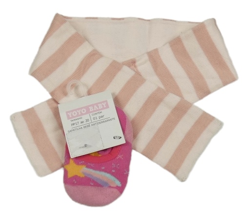 • Nové - Světlepudrovo-starorůžová pruhovaná šála Kitchoun + teplé neviditelné ponožky s kometou vel. 17-20