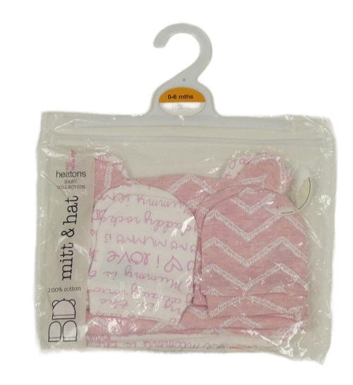 Nové - 4set - Růžová vzorovaná bavlněná čepice + bílá s nápisy + 2x rukavičky Heatons