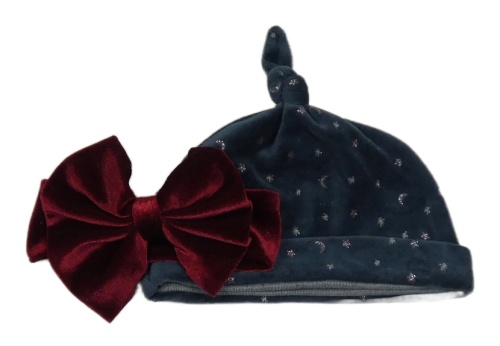 2set - Vínová sametová čelenka s mašlí + sametová čepice s hvězdami