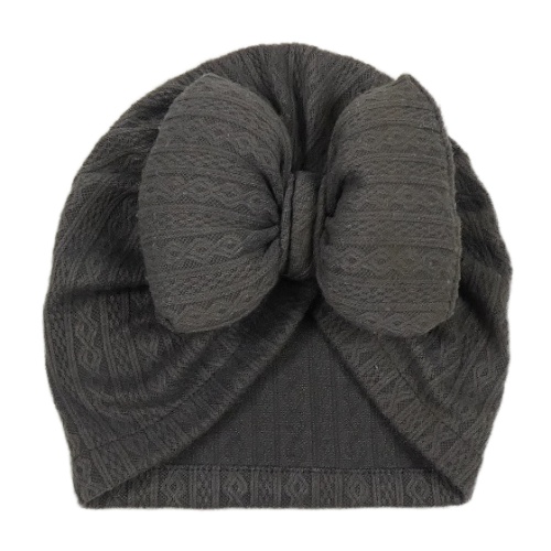 Tmavošedá vzorovaná turbanová čepice s mašlí