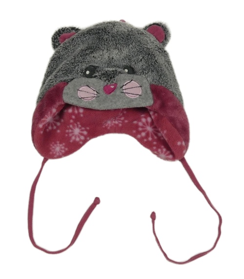 Šedo-růžová kožešinová podšitá ušanka s myškou
