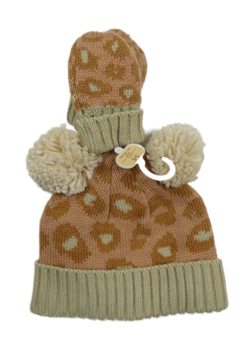 Nové - 2 set - růžovo-béžová leopardí pletená čepice + rukavice George