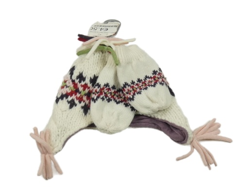 Nové - 2Set - Smetanová pletená čepice se vzorem + rukavice Adams